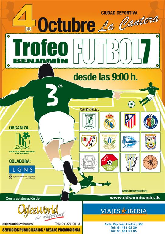 La tercera edición del Torneo Benjamín de Fútbol-7 San Nicasio 2008, se jugará el próximo sábado 4 de Octubre de 2008, en la Ciudad Deportiva de LA CANTERA, de Leganés – Madrid.