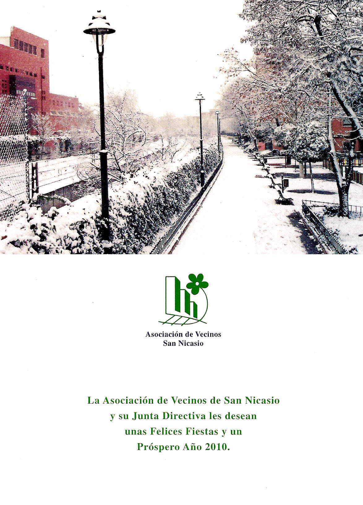 Las Juntas Directivas de los equipos, Club Deportivo Asociación de Vecinos de San Nicasio y su filial el Club Deportivo Aries Lega, desean a todos sus jugadores, entrenadores, delegados, ayudantes, colaboradores y por supuesto aficionados, que celebren con todos sus amigos y familiares unas felices fiestas y un próspero año 2010, cargado de nuevas emociones, eventos, ilusiones…