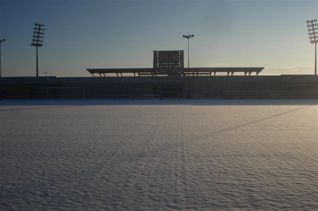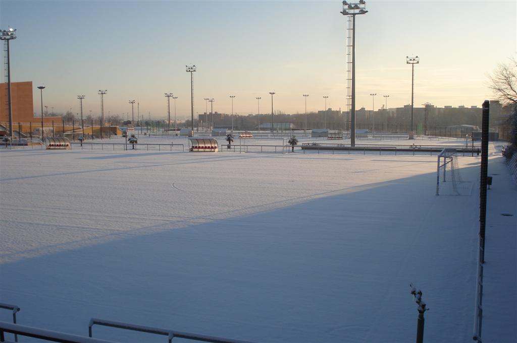 Aspecto de la Ciudad Deportiva La Cantera y el Anexo de Butarque el 11 de enero de 2010, tras la copiosa nevada del día anterior.