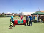 La entrega de trofeos corrió a cargo de la Concejala de Deportes del Ilustre Ayuntamiento de Leganés, Dª Elena Ayllón, del Concejal del grupo ULEG D. Carlos Delgado y del presidente del C.D. Asoc. Vec. San Nicasio D. Antonio Cotillas.