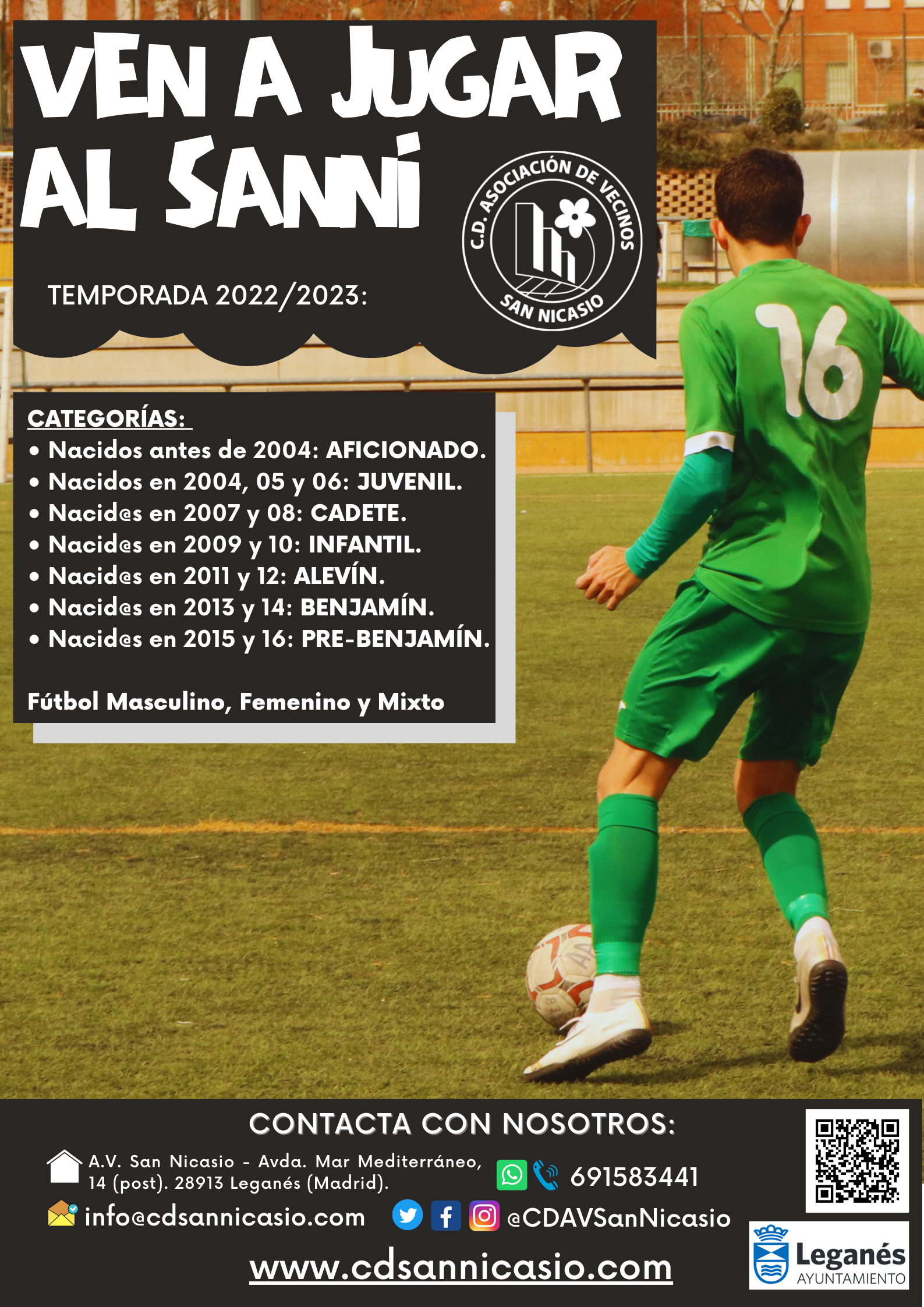Puedes rellenar el formulario en el siguiente enlace https://cdsannicasio.com/juega-en-el-cd-san-nicasio/ y te informaremos lo antes posible.