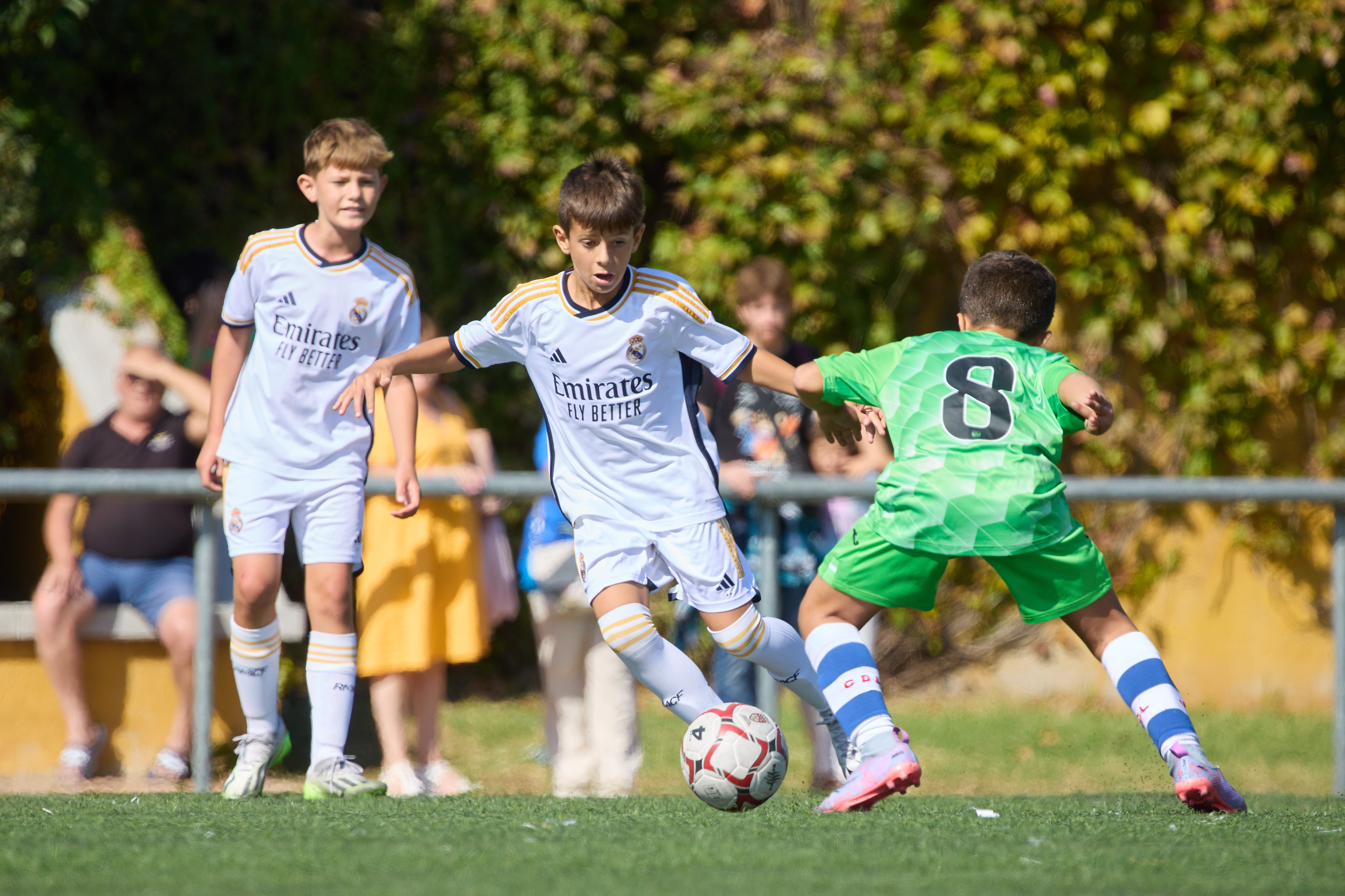 El esférico echó a rodar a las 10:00 del pasado 12 de Octubre, como es habitual en la cita se dió el pitido inicial en los 4 campos del Parque Deportivo de “La Cantera”, durante más de 5 horas tendríamos fútbol Benjamín del mas alto nivel en Leganés.