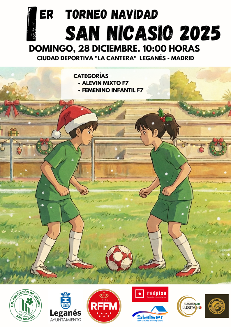 El I Torneo de Navidad San Nicasio 2025 nace con el objetivo de convertirse en una cita anual de referencia, promoviendo valores como el compañerismo, el respeto y la deportividad, además de ofrecer a familias y aficionados una jornada festiva en torno al fútbol base.